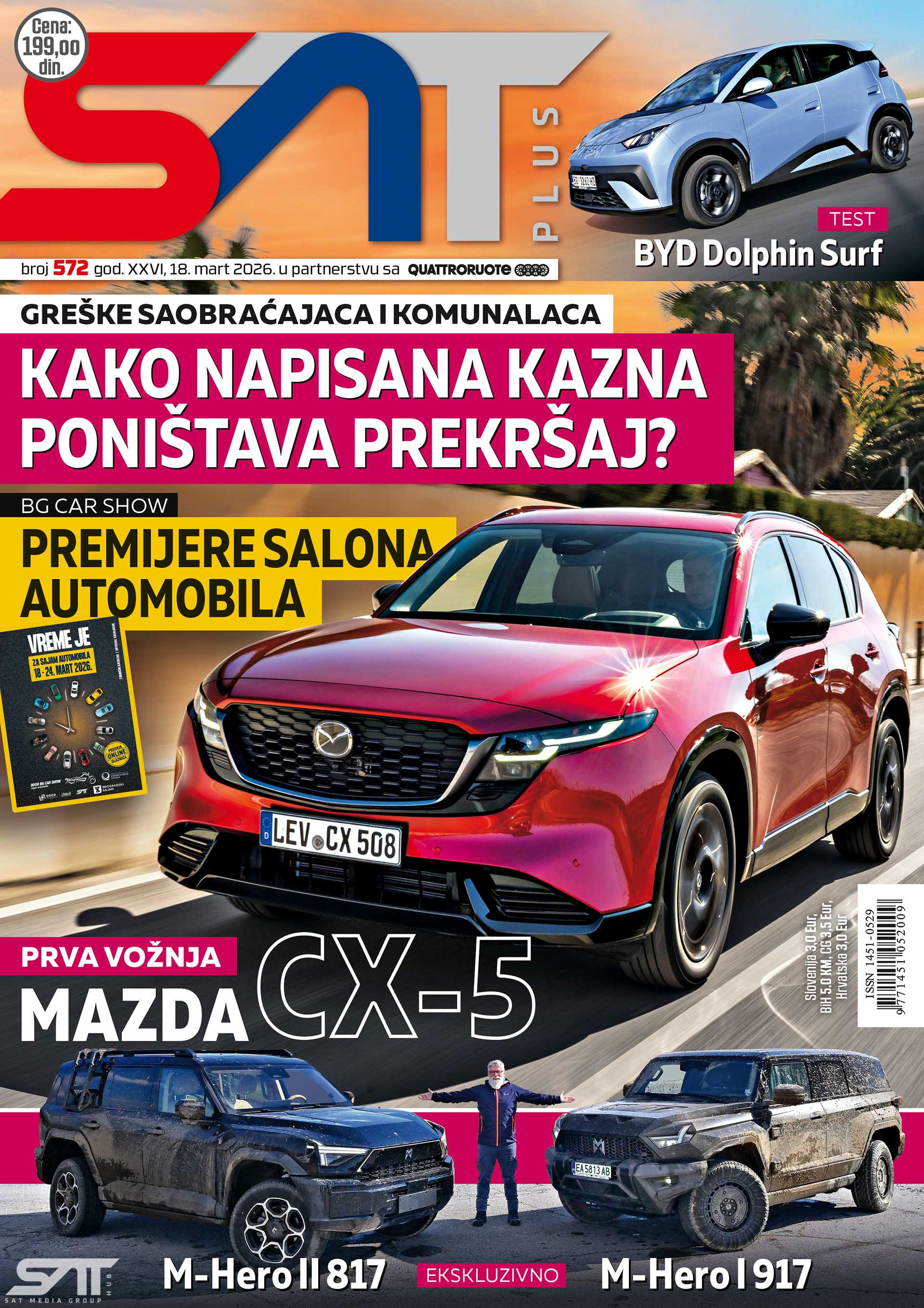Revija SAT Plus je na sajmu automobila u Beogradu, ali je i sajam automobila u reviji SAT Plus. Kao i svake godine, i u ovom broju donosimo pregled najvažnijih premijera sajma, koji jeste najvažniji automobilski događaj u našoj zemlji. To je razlog zašto sa ovim brojem izlazimo jedan dan ranije nego što je to uobičajeno – u sredu umesto u četvrtak. Ove